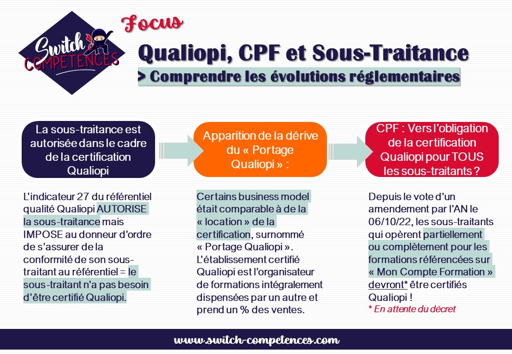 > Il deviendrait obligatoire aux prestataires sous-traitants de se conformer aux mêmes obligations que le donneur d'ordre dont le fait d'être certifié Qualiopi et d'être "organisme habilité à former".